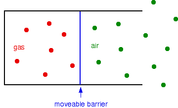 Now suppose if we heat the gas, but not the air that is outside. The gas molecules will now move faster and will hit the barrier more frequently. On the other side, air molecules are hitting it exactly as before.